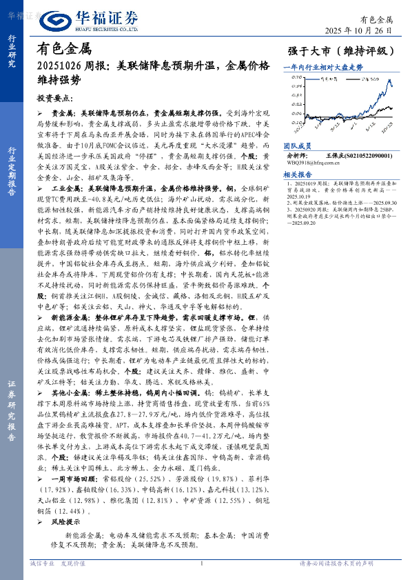 【华福证券】【202510】20251026周报:美联储降息预期升温,金属价格维持强势-13页