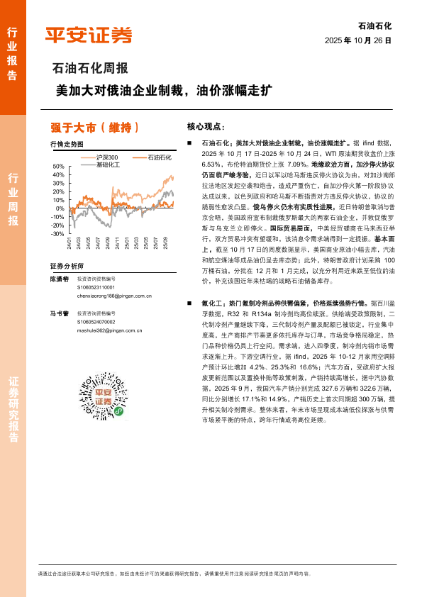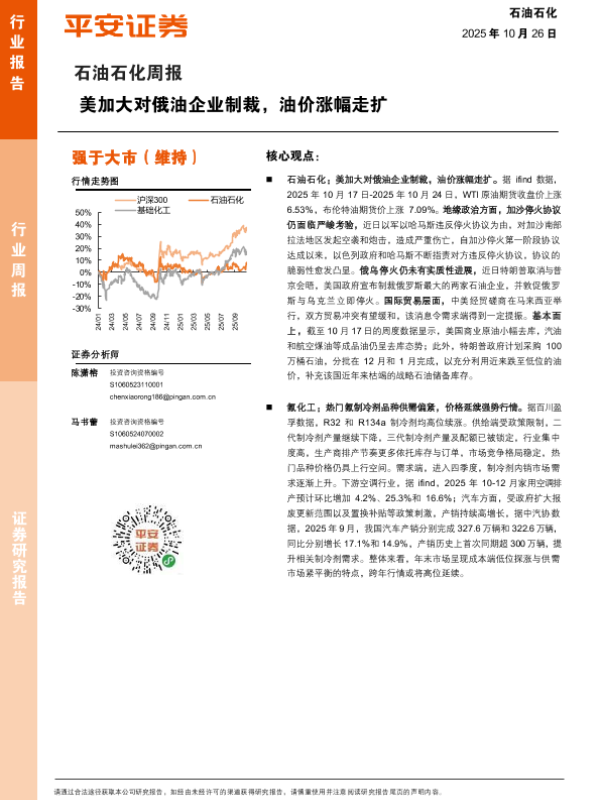 【平安证券】【202510】石油石化周报:美加大对俄油企业制裁,油价涨幅走扩-15页