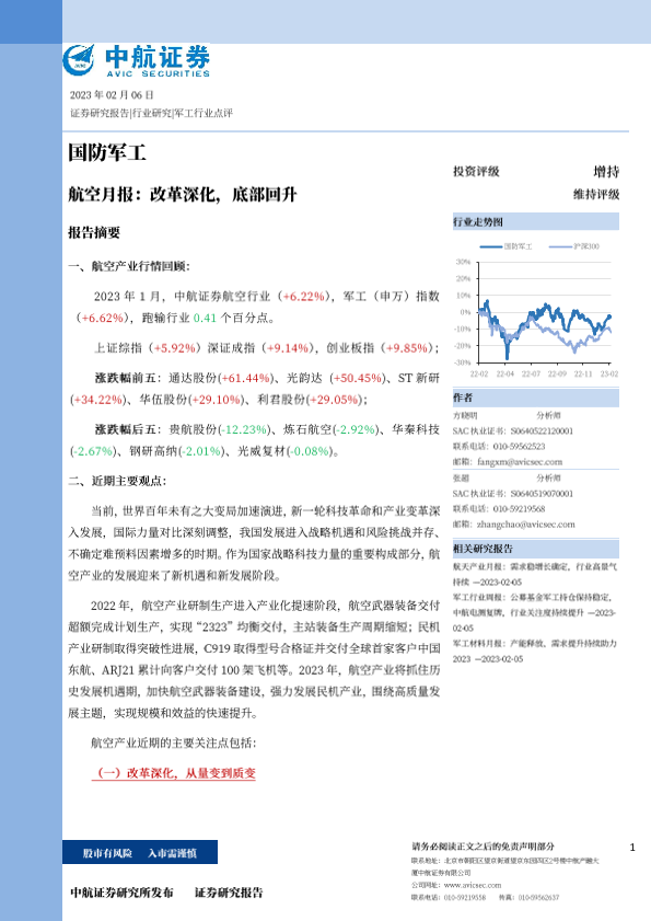 【中航证券】【20230206】国防军工行业航空月报:改革深化,底部回升-20页