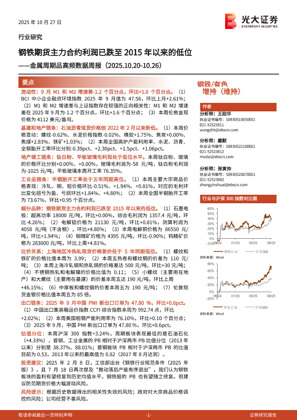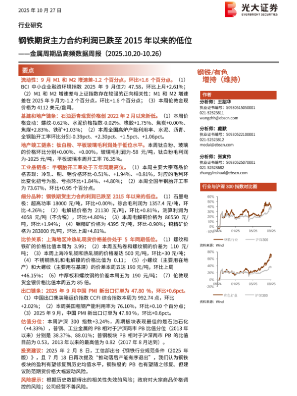 【光大证券】【202510】钢铁期货主力合约利润已跌至2015年以来的低位——金属周期品高频数据周报(2025.10.20-10.26)-26页