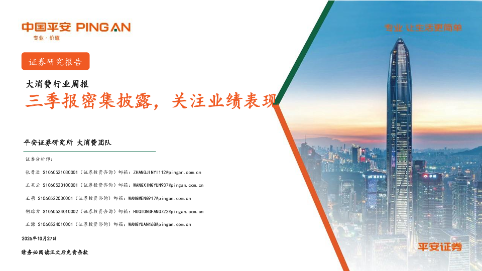 【平安证券研究所大消费团队】【202510】大消费行业周报:三季报密集披露,关注业绩表现-14页