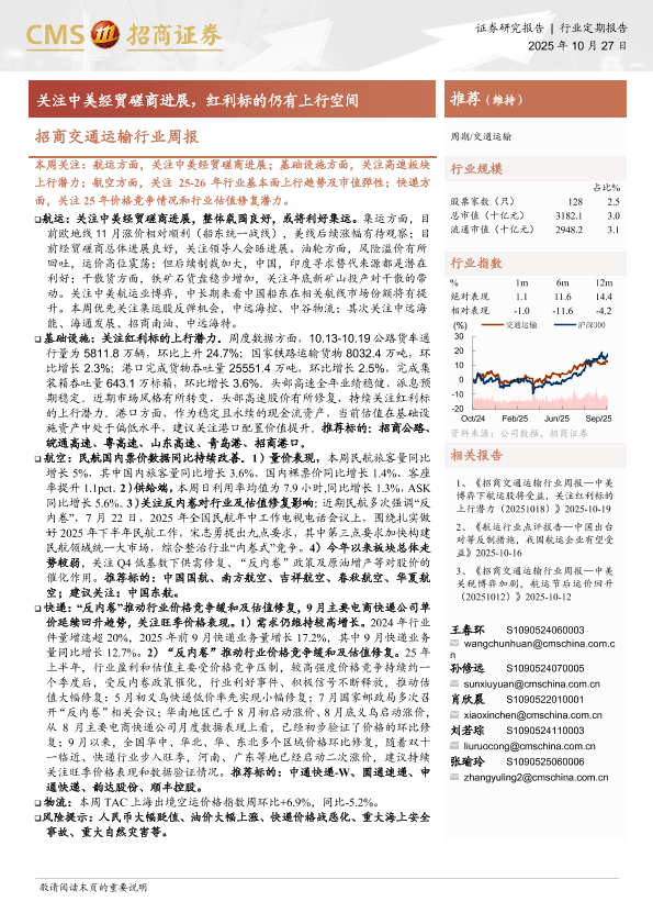 【海通证券】【202510】招商证券-交通运输行业周报:关注中美经贸磋商进展,红利标的仍有上行空间-17页