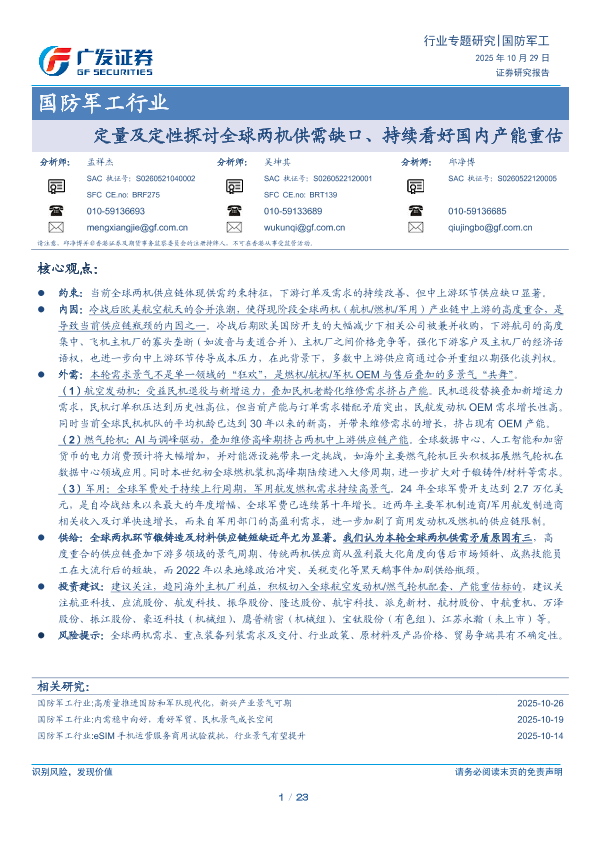 【广发证券】【202510】定量及定性探讨全球两机供需缺口、持续看好国内产能重估-23页