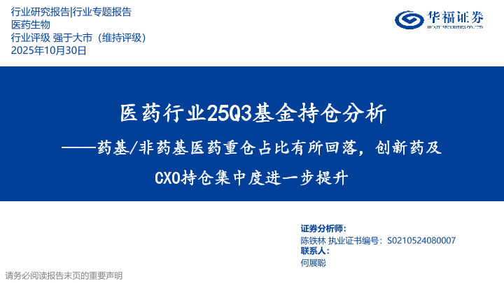 【华福证券】【2025】医药行业25Q3基金持仓分析:药基/非药基医药重仓占比有所回落,创新药及CXO持仓集中度进一步提升-53页