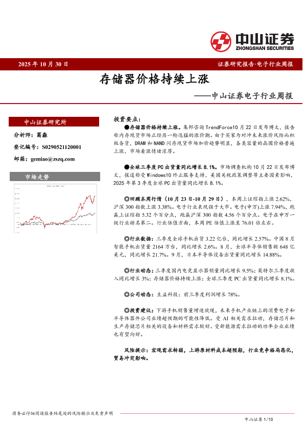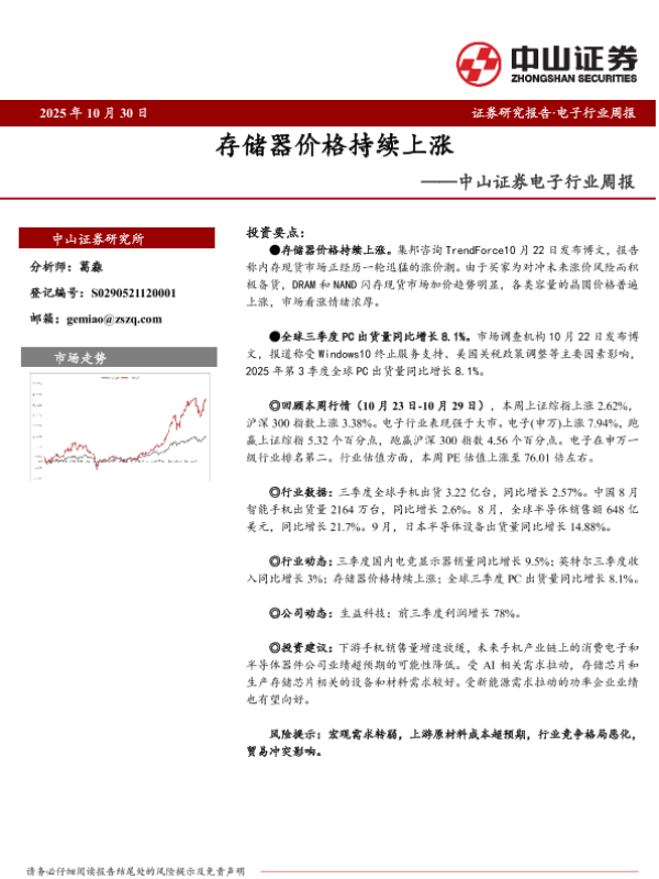 【中山证券】【202510】2025年10月30日 证券研究报告·电子行业周报 存储器价格持续上涨-10页