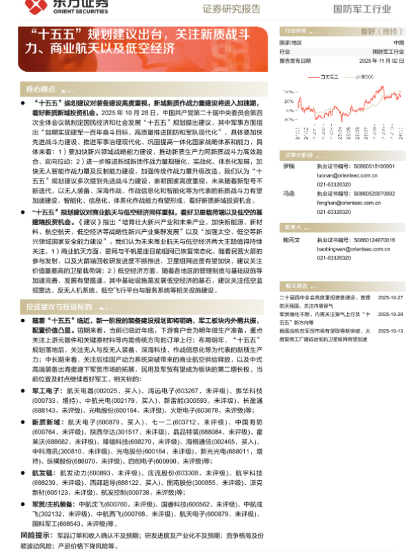 低空经济 国防军工 新质战斗力 商业航天 十五五规划