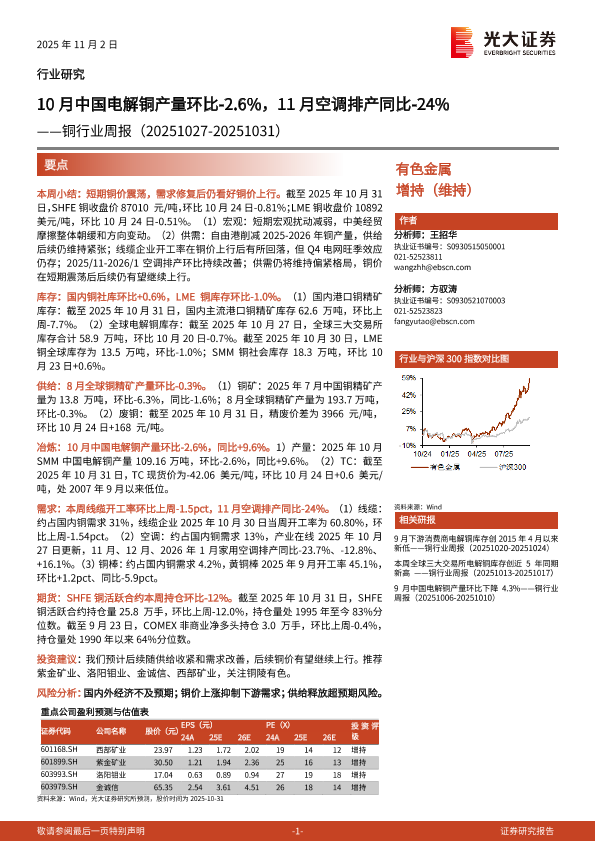 【光大证券】【202511】10月中国电解铜产量环比-2.6%,11月空调排产同比-24%-18页