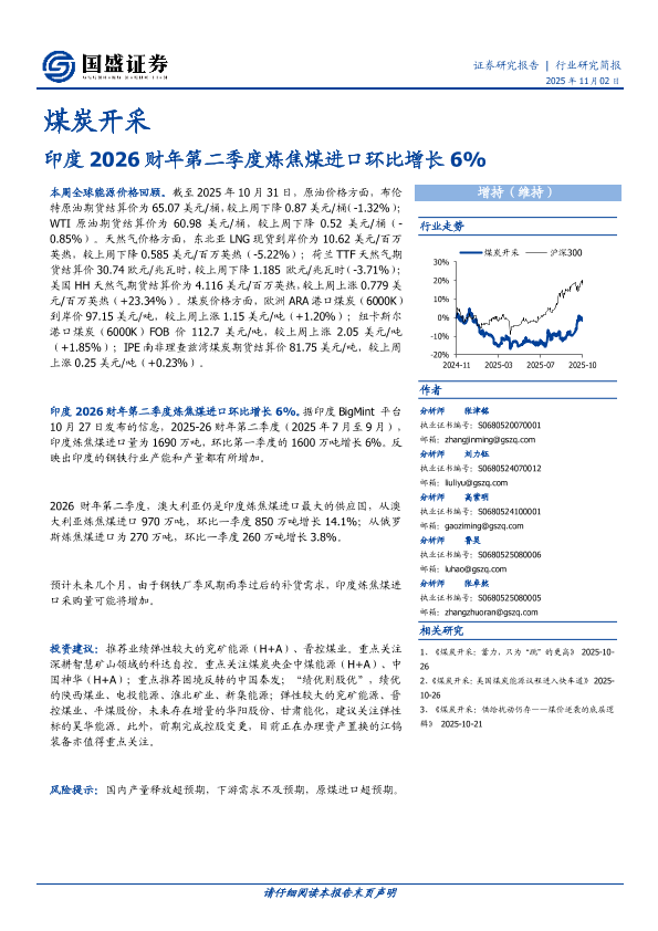 【国盛证券】【202511】煤炭开采:印度2026财年第二季度炼焦煤进口环比增长6%-13页