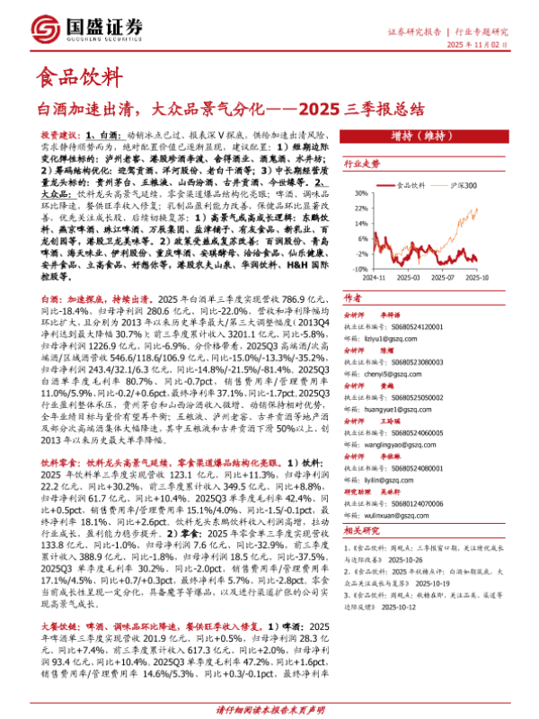【国盛证券】【202511】白酒加速出清,大众品景气分化——2025三季报总结-21页
