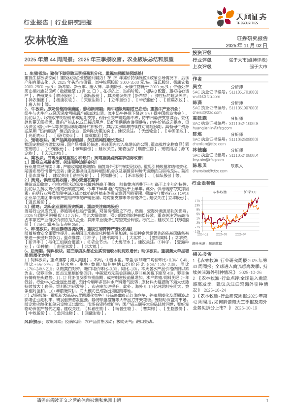 【天风证券】【202511】农林牧渔-行业研究周报 2025年第 44周周报:2025年三季报收官,农业板块总结和展望-17页