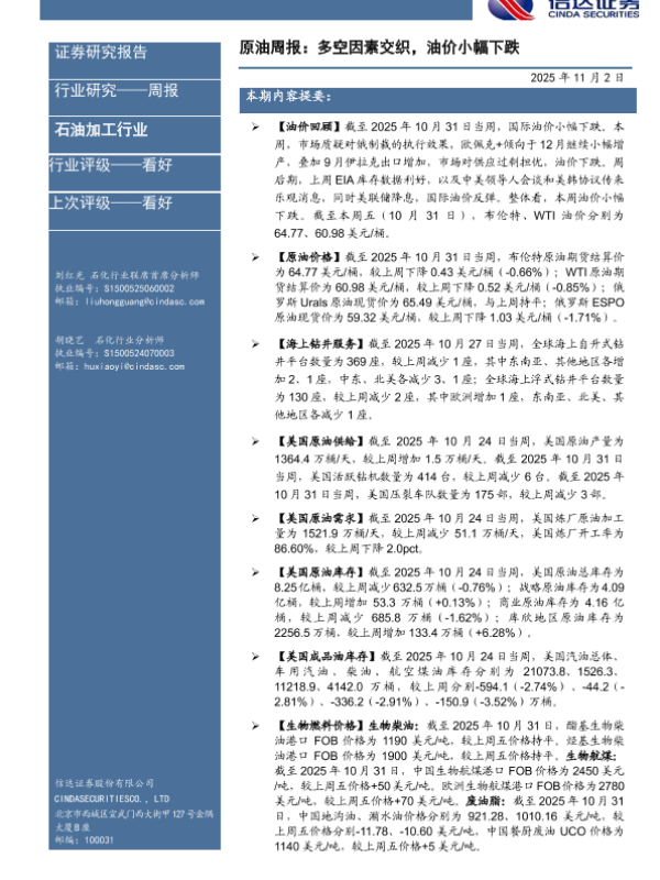 【信达证券】【202511】原油周报:多空因素交织,油价小幅下跌-29页