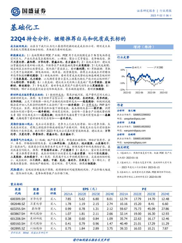 【国盛证券】【20230206】基础化工行业周报:22Q4持仓分析,继续推荐白马和优质成长标的-28页