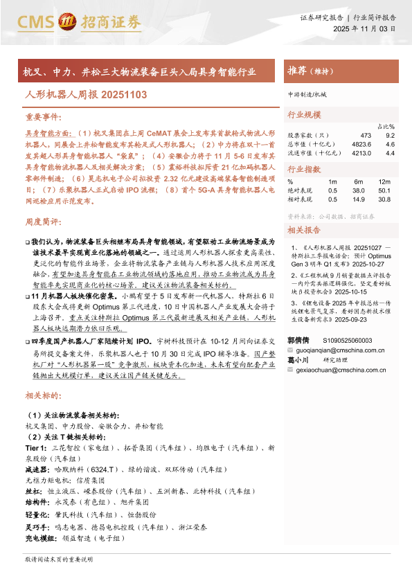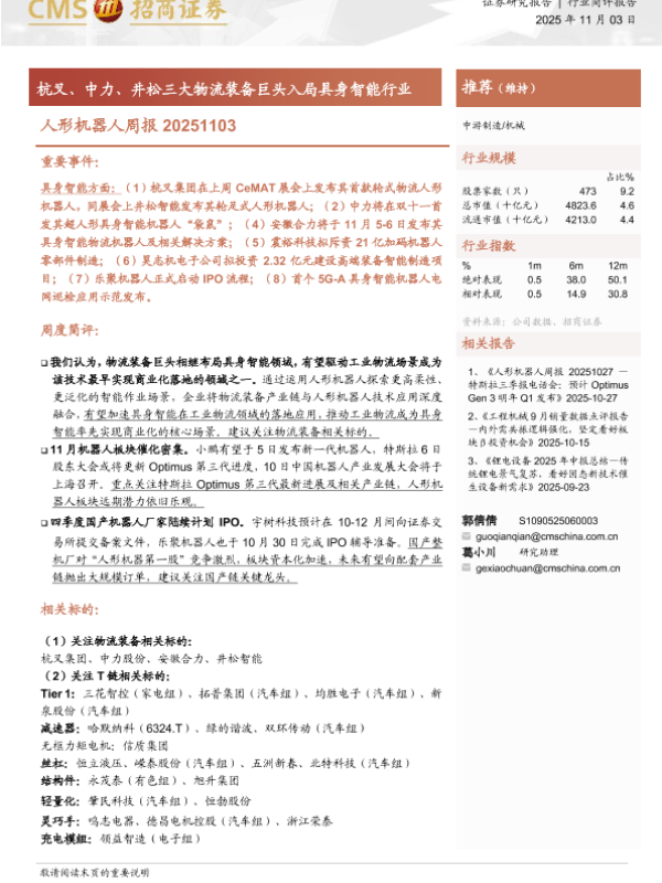 【海通证券】【202511】人形机器人周报 20251103 中游制造/机械-10页