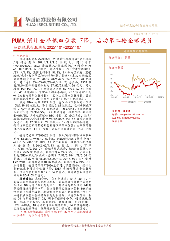 【华西证券】【202511】PUMA预计全年低双位数下降,启动第二轮全球裁员-33页