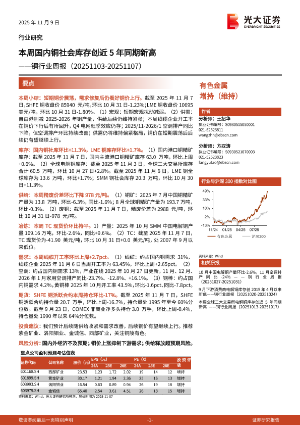 【光大证券】【202511】本周国内铜社会库存创近5年同期新高——铜行业周报(20251103-20251107)-18页