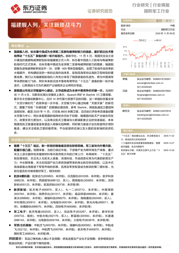 【东方证券】【202511】国防军工行业行业周报 ——福建舰入列,关注新质战斗力-12页