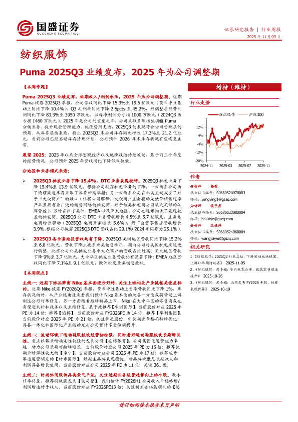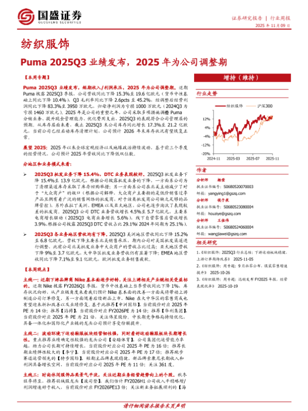 【国盛证券】【202511】Puma 2025Q3业绩发布,2025年为公司调整期-13页
