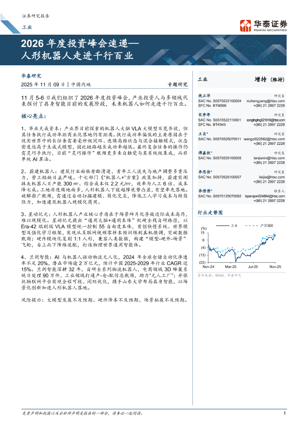 【华泰证券】【202511】2026年度投资峰会速递— 人形机器人走进千行百业-13页