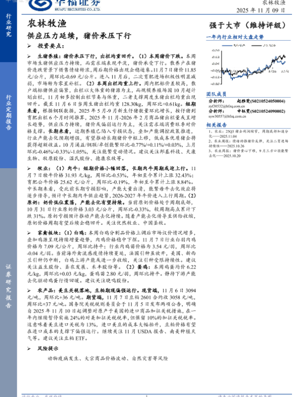【华福证券】【202511】农林牧渔行业定期报告:供应压力延续,猪价承压下行-12页