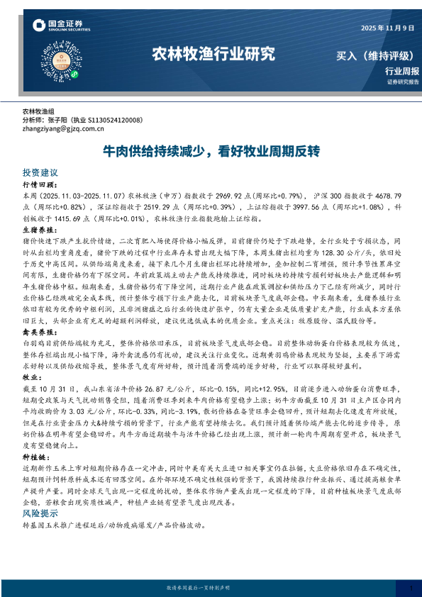 【国金证券】【202511】农林牧渔行业周报:牛肉供给持续减少,看好牧业周期反转-13页