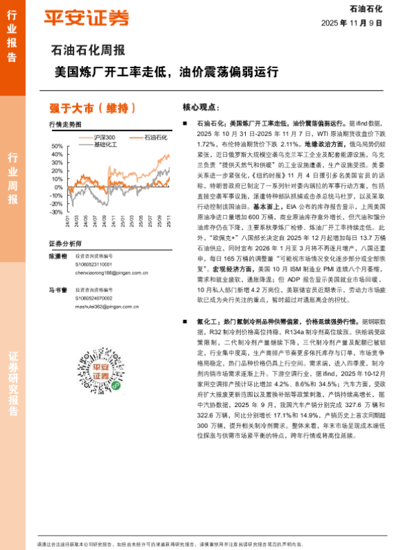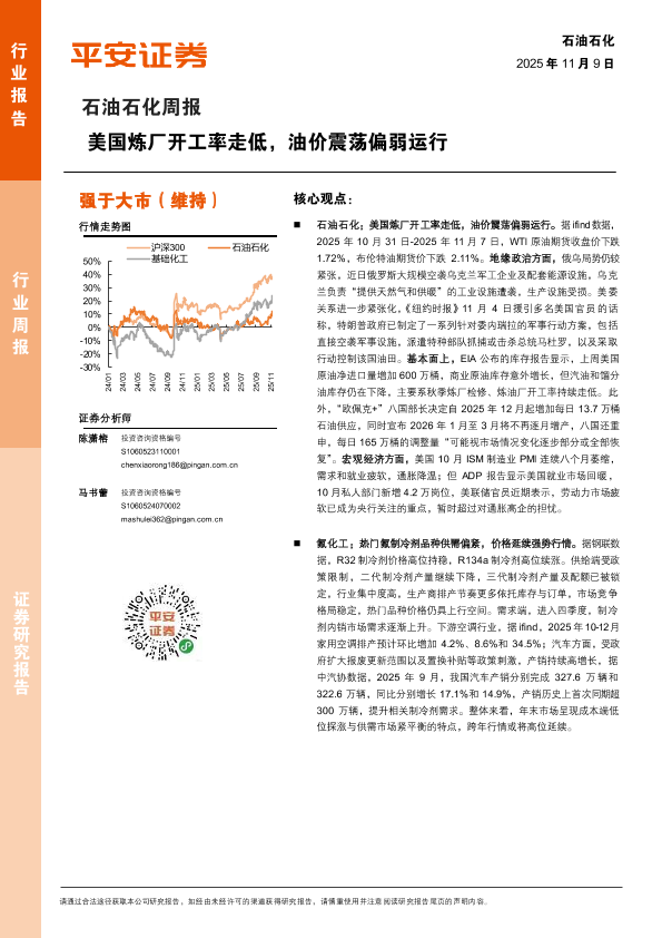 【平安证券】【202511】石油石化周报:美国炼厂开工率走低,油价震荡偏弱运行-15页