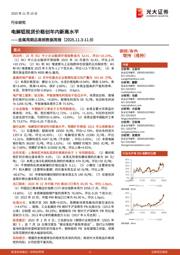【光大证券】【202511】电解铝现货价格创年内新高水平——金属周期品高频数据周报(2025.11.3-11.9)-26页