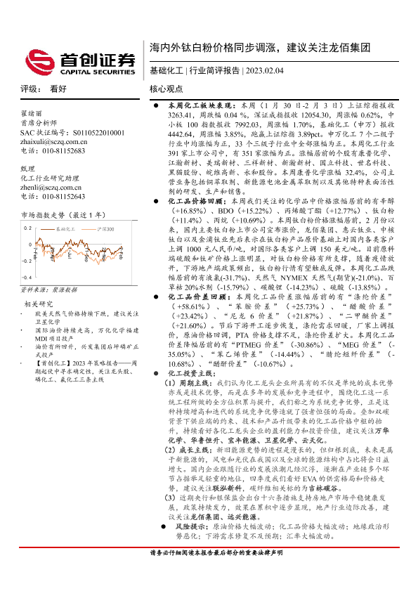 【首创证券】【20230204】基础化工行业简评报告:海内外钛白粉价格同步调涨,建议关注龙佰集团-16页