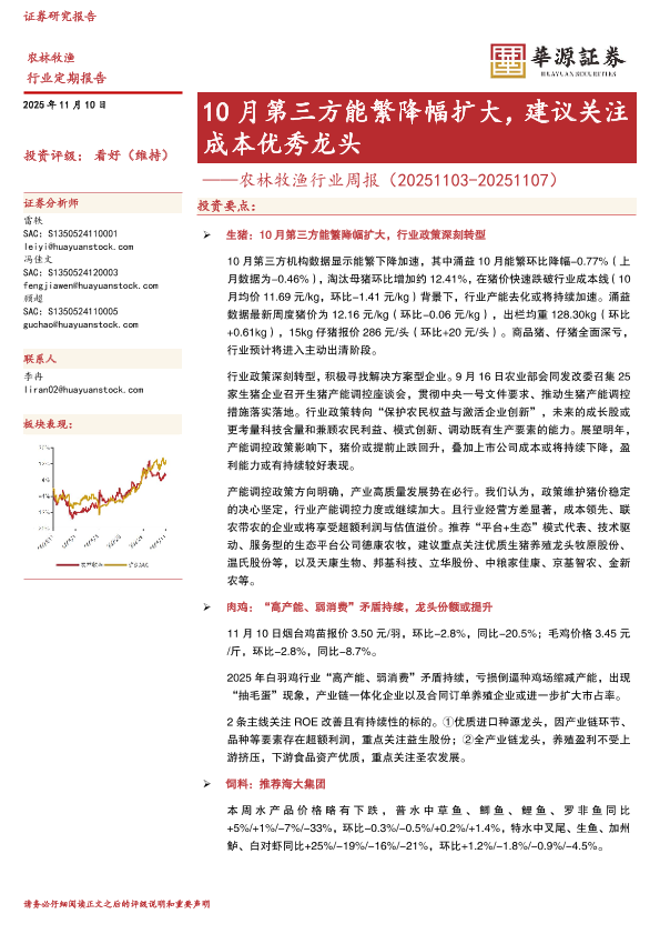 【华源证券】【202511】20251110-华源证券-农林牧渔行业周报:10月第三方能繁降幅扩大,建议关注成本优秀龙头.pdf-17页