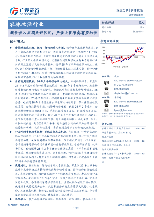 【广发证券】【202511】农林牧渔行业 猪价步入周期底部区间,产能去化节奏有望加快-22页