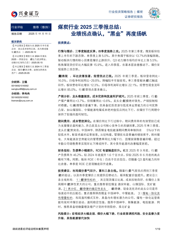 【兴业证券】【202511】煤炭行业2025年半年报总结:龙头成本韧性凸显,反内卷或催化绩拐点-19页
