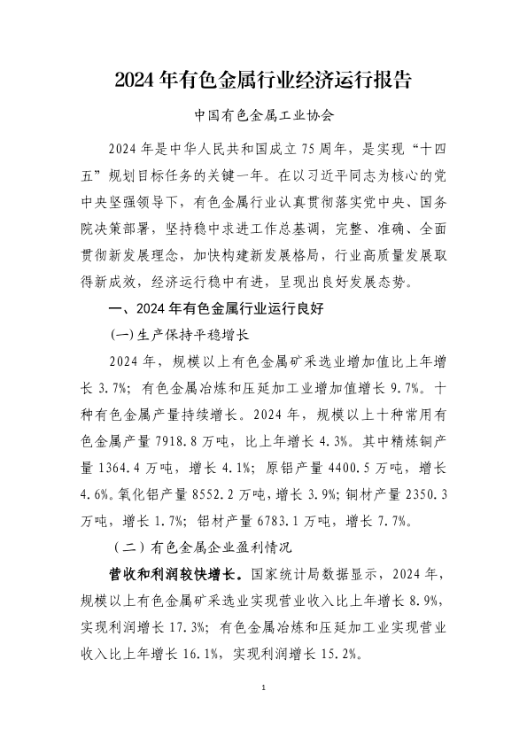 【中国有色金属工业协会】【2024】2024年有色金属行业经济运行报告-10页