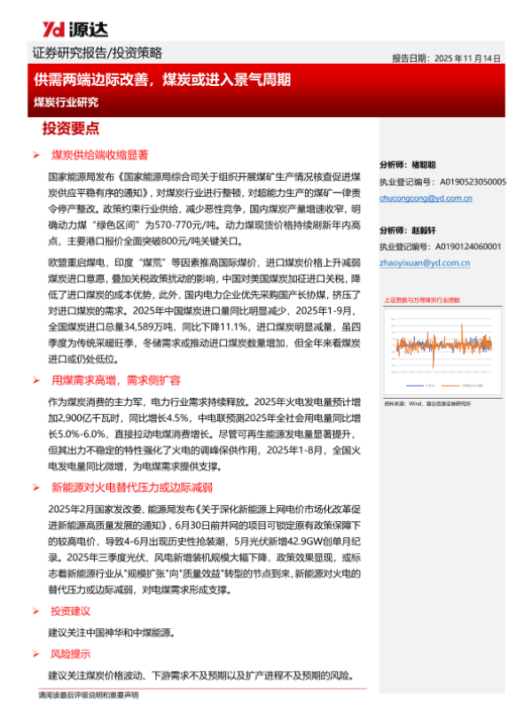 【源达信息】【202511】煤炭行业研究:供需两端边际改善,煤炭或进入景气周期-15页