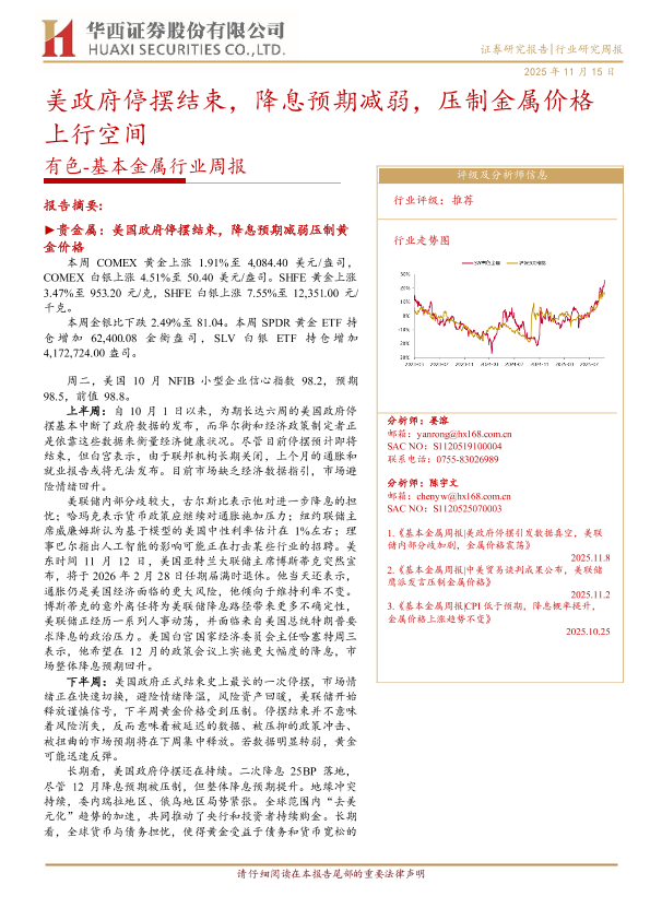 【华西证券】【202511】美政府停摆结束,降息预期减弱,压制金属价格上行空间-23页
