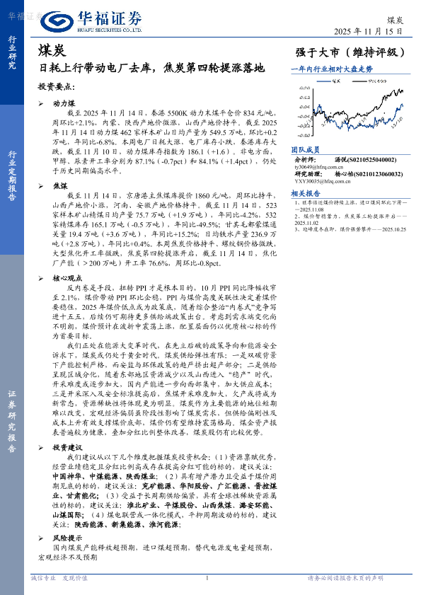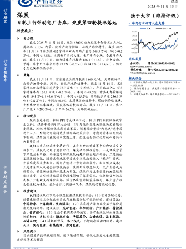【华福证券】【202511】日耗上行带动电厂去库,焦炭第四轮提涨落地-26页