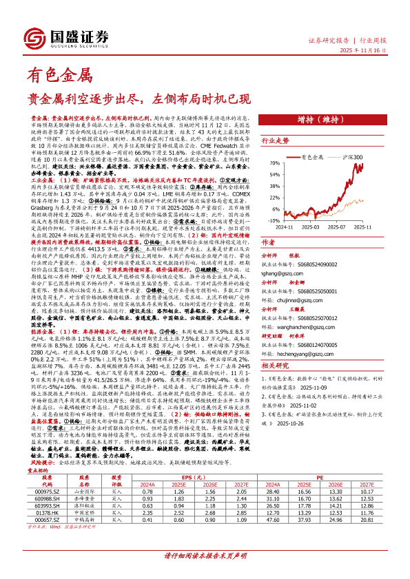 【国盛证券】【202511】有色金属行业周报:贵金属利空逐步出尽,左侧布局时机已现-23页