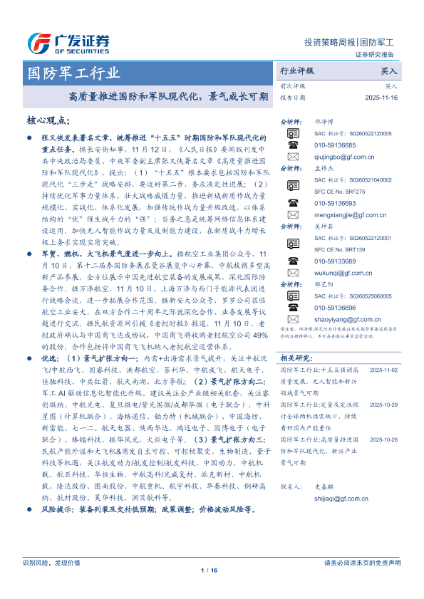 【广发证券】【202511】国防军工行业:高质量推进国防和军队现代化,景气成长可期-16页