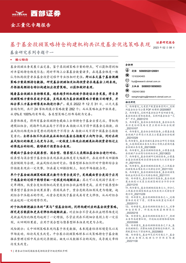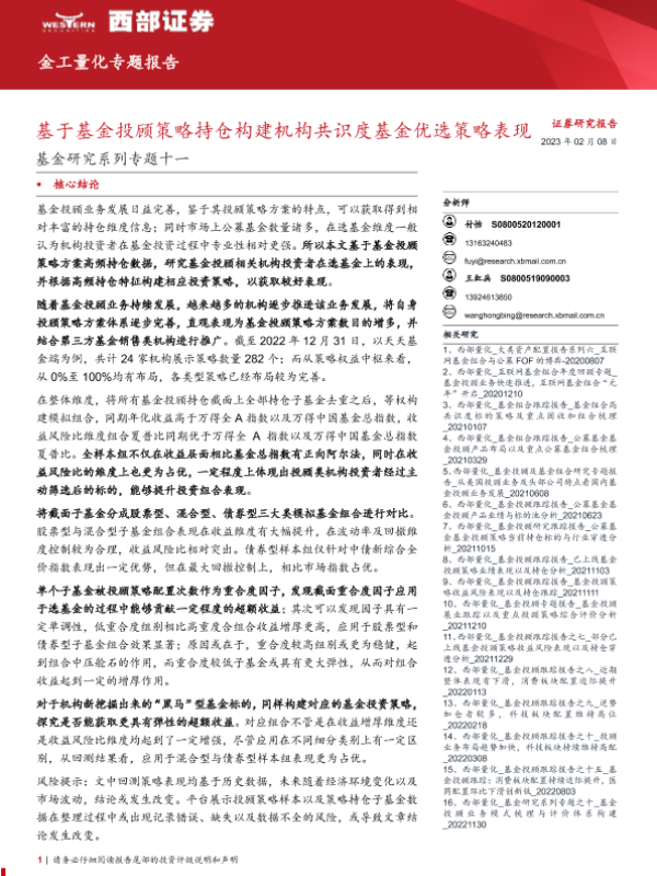 【西部证券】【20230208】基于基金投顾策略持仓构建机构共识度基金优选策略表现-23页