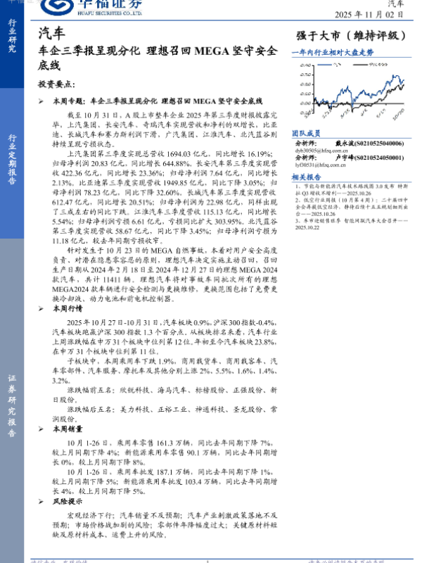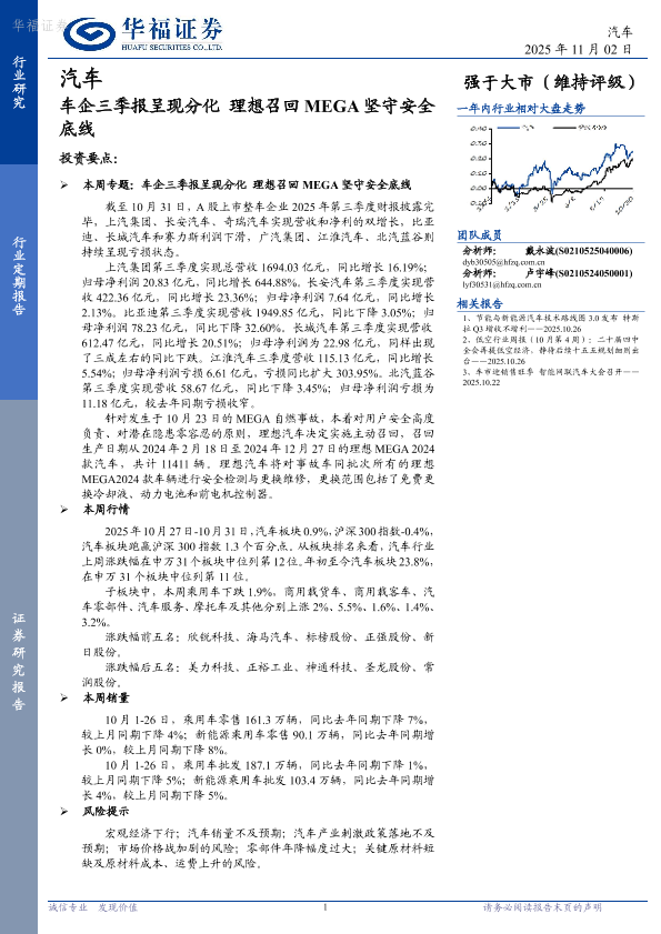 【华福证券】【202510】车企三季报呈现分化理想召回 MEGA坚守安全底线-11页
