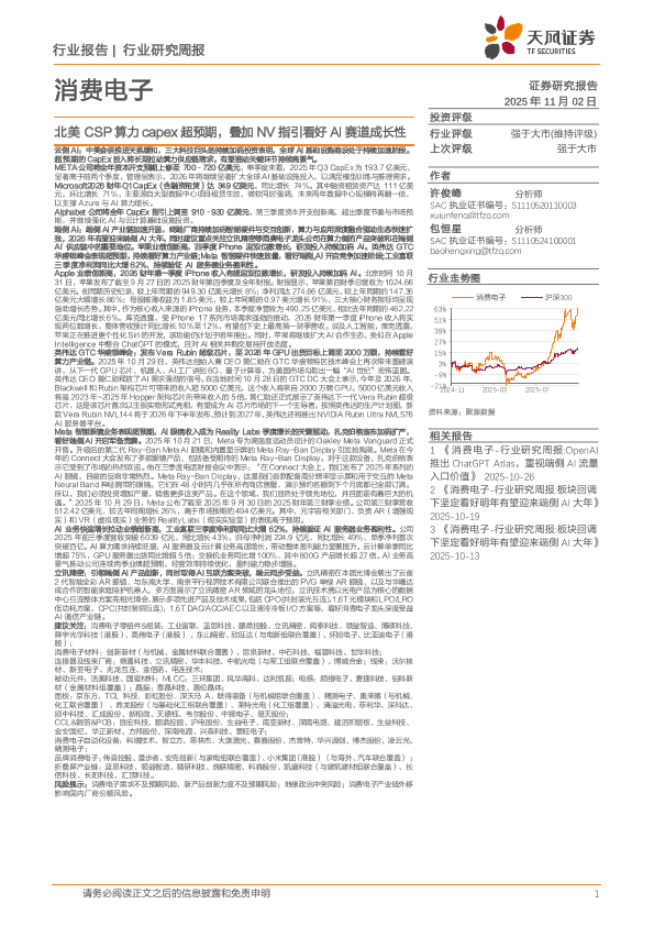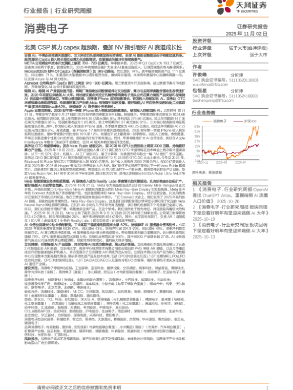 【天风证券】【202511】消费电子行业研究周报:北美CSP算力capex超预期,叠加NV指引看好AI赛道成长性-13页