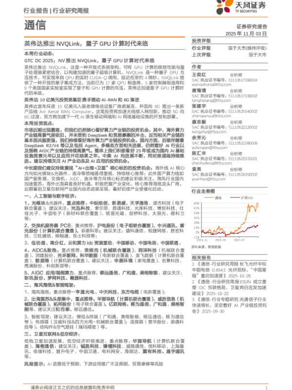 【天风证券】【202511】通信-行业研究周报 英伟达推出NVQLink,量子 GPU计算时代来临-12页
