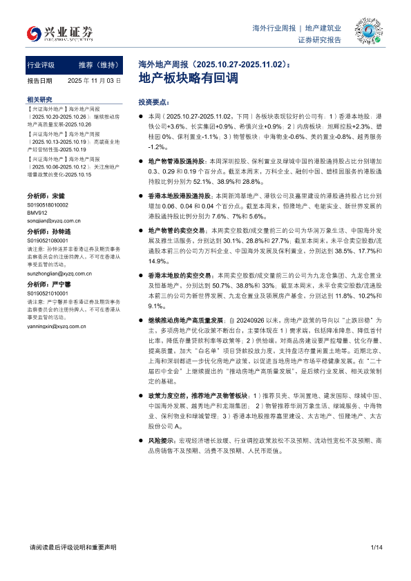 【兴业证券】【202511】海外地产周报:地产板块略有回调-14页