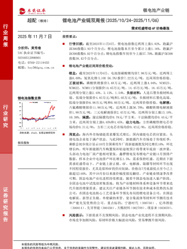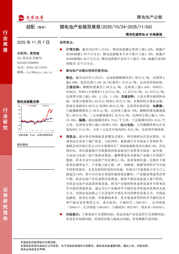 【东莞证券】【202511】超配(维持)锂电池产业链双周报(2025/10/24-2025/11/06)-13页