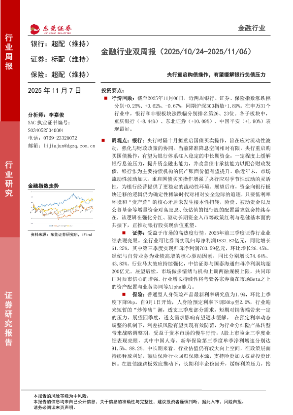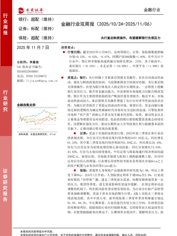 【东莞证券】【202511】金融行业双周报:央行重启购债操作,有望缓解银行负债压力-15页