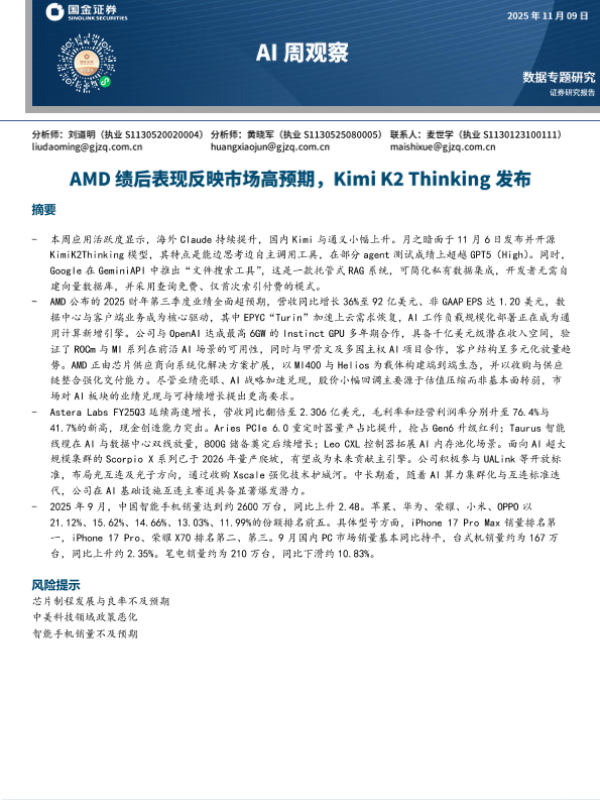 【国金证券】【202511】AI周观察:AMD绩后表现反映市场高预期,Kimi K2 Thinking发布-10页