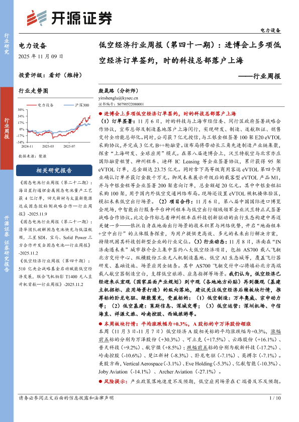 【开源证券】【202511】电力设备行业低空经济行业周报(第四十一期):进博会上多项低空经济订单签约,时的科技总部落户上海-10页