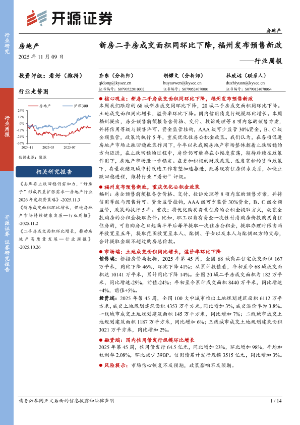 【开源证券】【202511】新房二手房成交面积同环比下降,福州发布预售新政-14页
