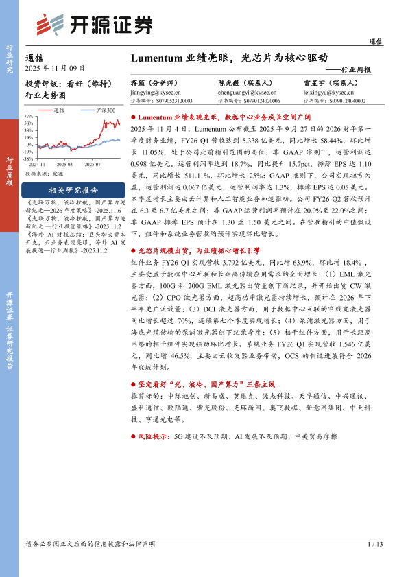 【开源证券】【202511】Lumentum业绩亮眼,光芯片为核心驱动-13页