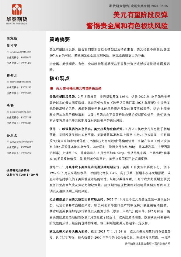 【华泰期货】【20230205】宏观大类专题:美元有望阶段反弹,警惕贵金属和有色板块风险-25页