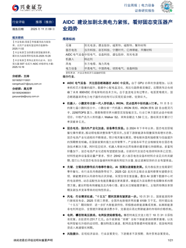 【兴业证券】【202511】AIDC建设加剧北美电力紧张,看好固态变压器产业趋势-21页