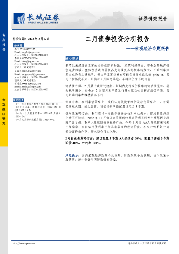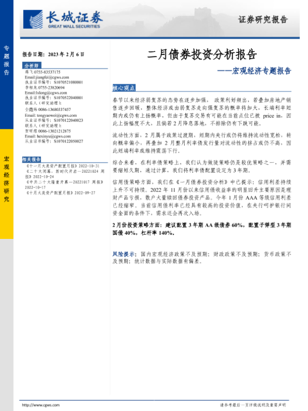 【长城证券】【20230206】二月债券投资分析报告-16页